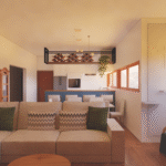 Projeto de interiores que une funcionalidade e estética: cozinha em tons suaves, integrada à sala de estar com mobiliário moderno e soluções inteligentes de aproveitamento de espaço. Cada detalhe pensado para proporcionar conforto e personalidade.”
