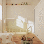Projeto funcional e aconchegante, com design pensado para acompanhar o crescimento da criança. Destaque para a mesa regulável, nichos organizadores para brinquedos e uma área em círculo embutida na marcenaria, com estofado ideal para momentos de leitura e descanso.
